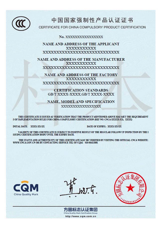 為加強(qiáng)對(duì)CCC產(chǎn)品認(rèn)證證書和標(biāo)志的管理,確保CCC產(chǎn)品認(rèn)證證書和標(biāo)志的正確使用,維護(hù)CCC產(chǎn)品認(rèn)證證書和標(biāo)志的權(quán)威性和CQM的信譽(yù),方圓標(biāo)志認(rèn)證集團(tuán)依據(jù)國(guó)家認(rèn)證認(rèn)可的相關(guān)要求制定了產(chǎn)品認(rèn)證證書和標(biāo)志使用規(guī)則。