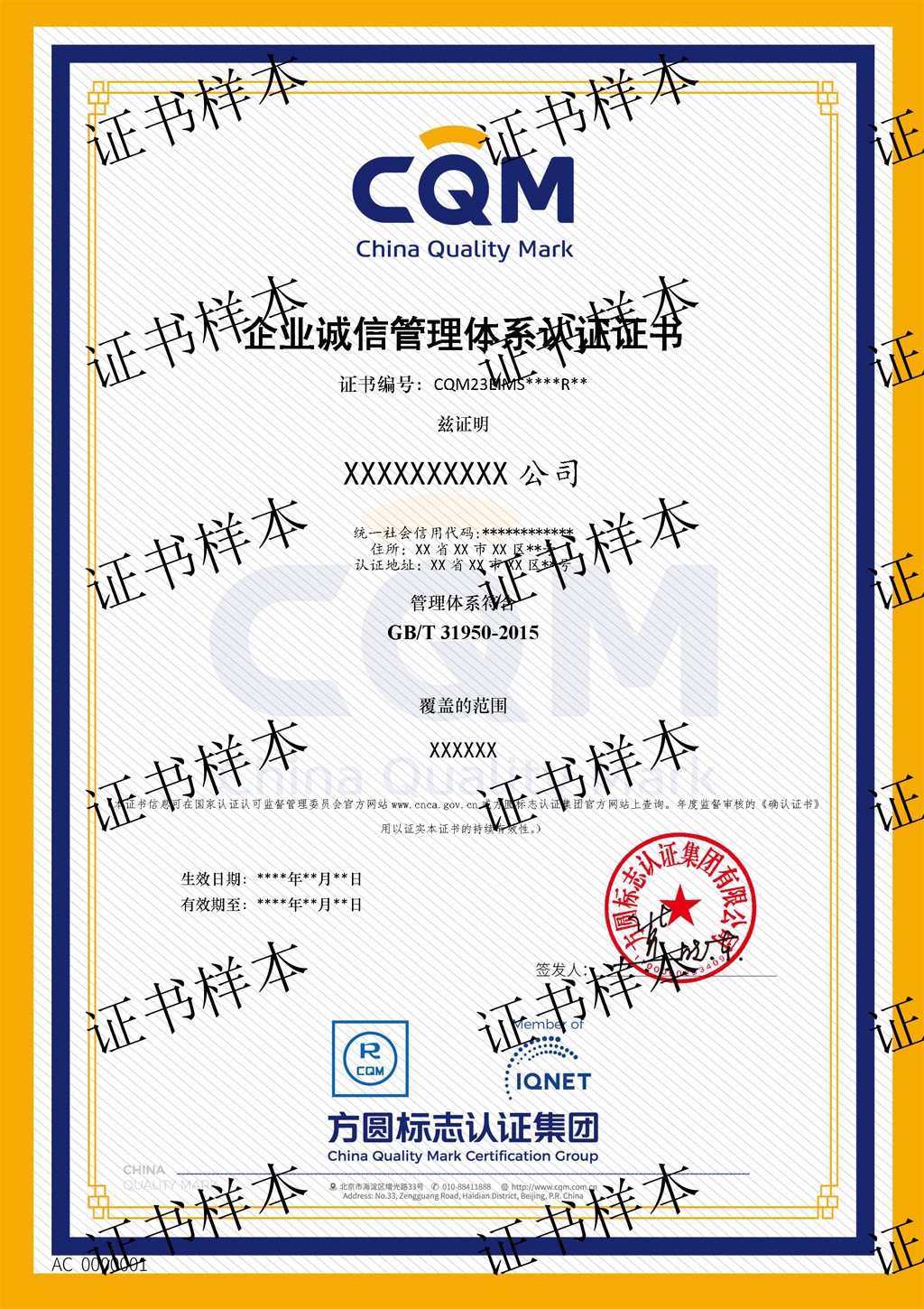認(rèn)證用標(biāo)準(zhǔn): GB/T31950-2015 企業(yè)誠信管理體系